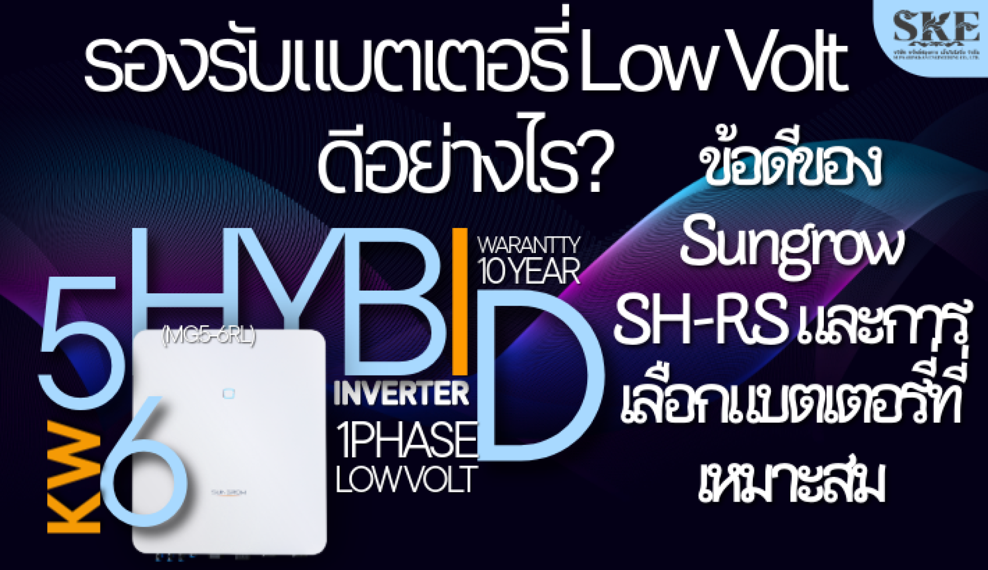 เมื่อพูดถึงระบบโซล่าเซลล์ไฮบริด คำถามสำคัญที่ตามมาคือ "จะเลือกใช้แบตเตอรี่แบบไหนดี?" โดยเฉพาะเมื่อมีตัวเลือกทั้งแบบแรงดันต่ำ (Low Voltage) และแรงดันสูง (High Voltage) สำหรับอินเวอร์เตอร์ยอดนิยมอย่าง Sungrow SH-RS Series บทความนี้ SKE จะมาไขข้อข้องใจว่าอินเวอร์เตอร์ซีรีส์นี้ถูกออกแบบมาเพื่อแบตเตอรี่ประเภทใด และทำไมการเลือกจับคู่ให้ถูกต้องจึงสำคัญอย่างยิ่งยวด