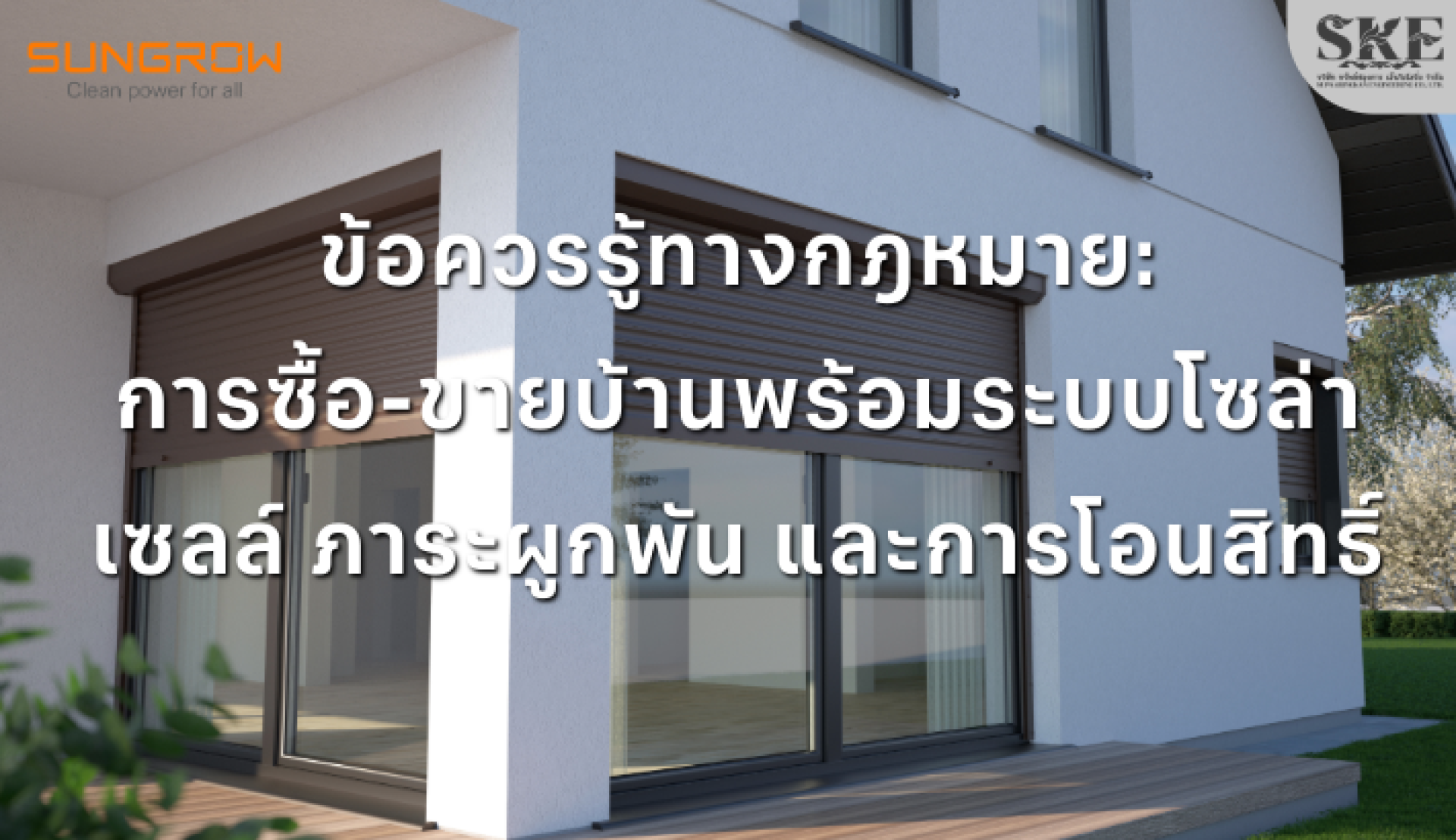 บทความนี้ SKE Solar จะมาสรุปประเด็นสำคัญที่ต้องตรวจสอบ ก่อนจรดปากกาเซ็นสัญญาซื้อขายบ้านที่มี "โรงไฟฟ้า" อยู่บนหลังคา