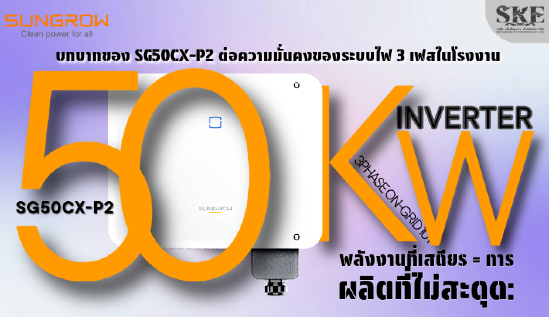 บทความนี้ SKE จะมาเจาะลึกถึงบทบาทสำคัญของอินเวอร์เตอร์เกรดอุตสาหกรรมอย่าง Sungrow SG50CX-P2 ในการเป็น "ผู้พิทักษ์" ความมั่นคงของระบบไฟฟ้า 3 เฟสภายในโรงงานของคุณ