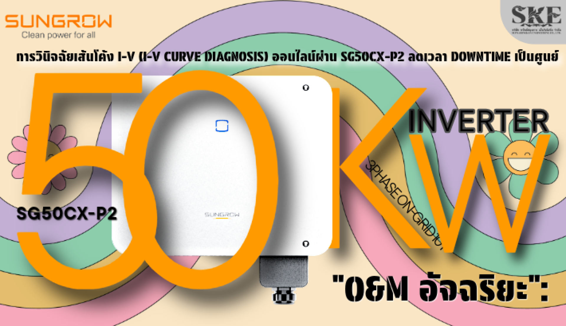 ติดต่อสอบถามและประเมินหน้างานฟรี:** (SKE Solar คือตัวแทนจำหน่าย Sungrow อย่างเป็นทางการ พร้อมให้บริการ O&M อัจฉริยะ)