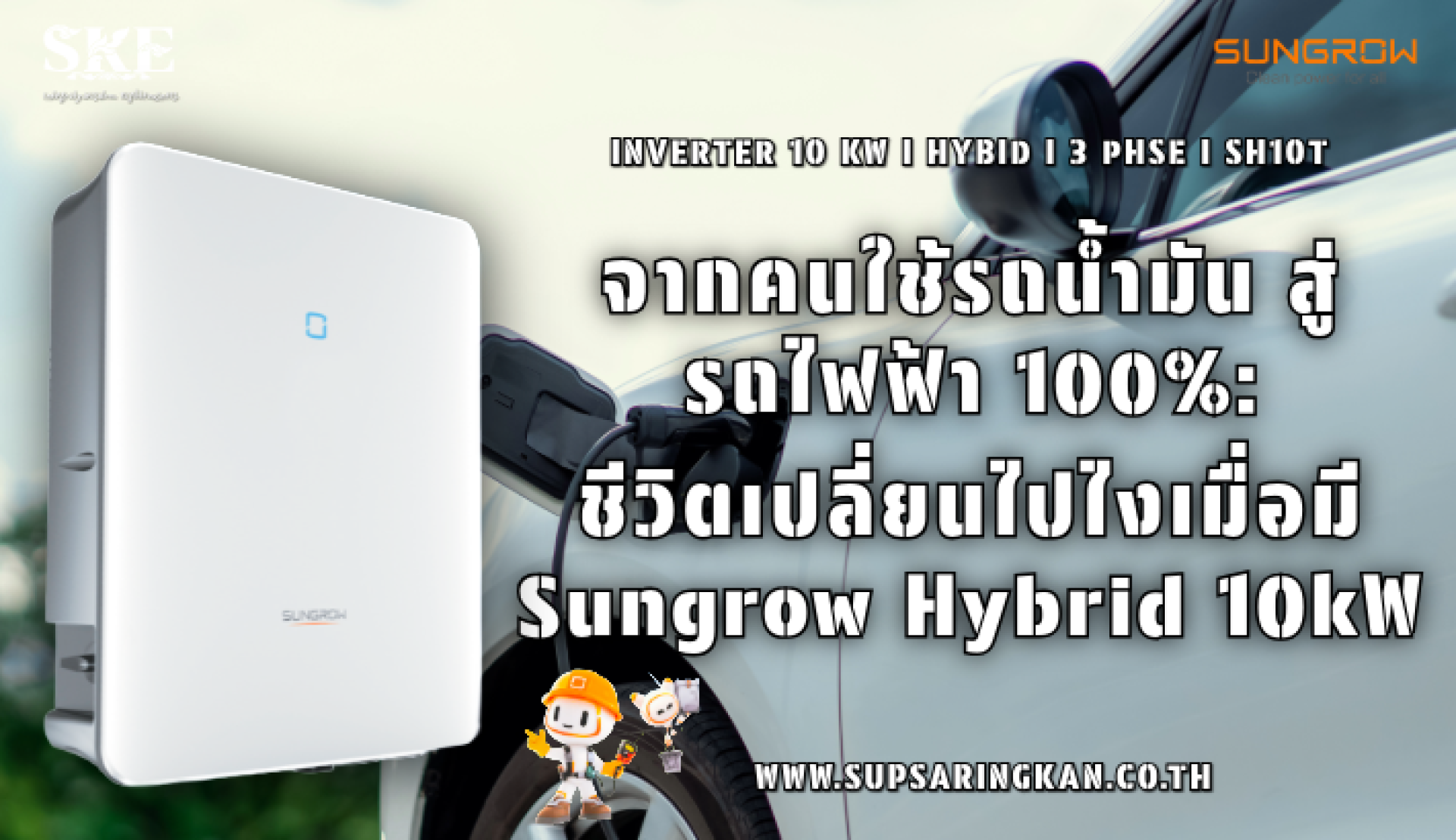 ชีวิต EV 100%: เปลี่ยนไปไงเมื่อมี Sungrow Hybrid 10kW (SH10T)? | SKE
