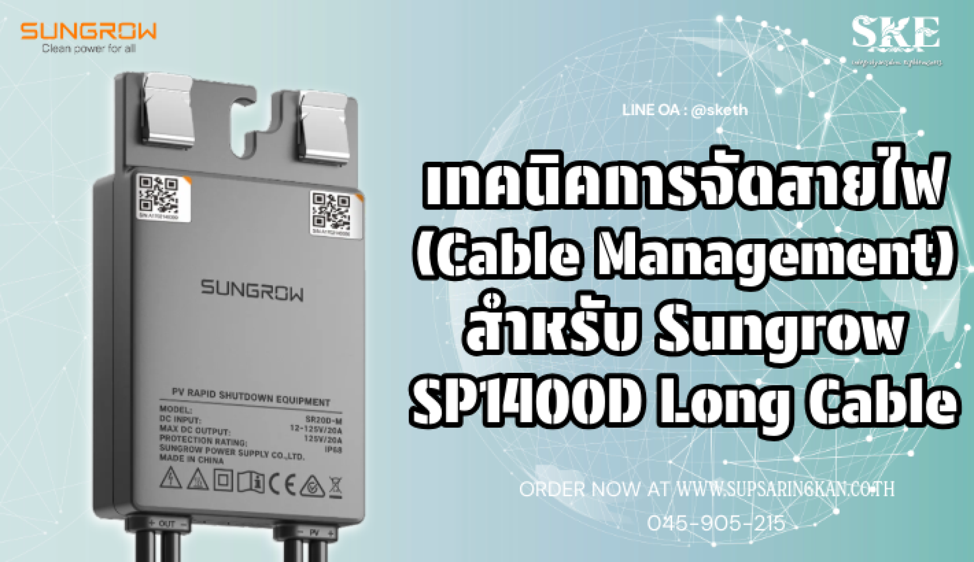 เทคนิคการจัดสายไฟ (Cable Management) สำหรับ Sungrow SP1400D Long Cable | SKE Solar