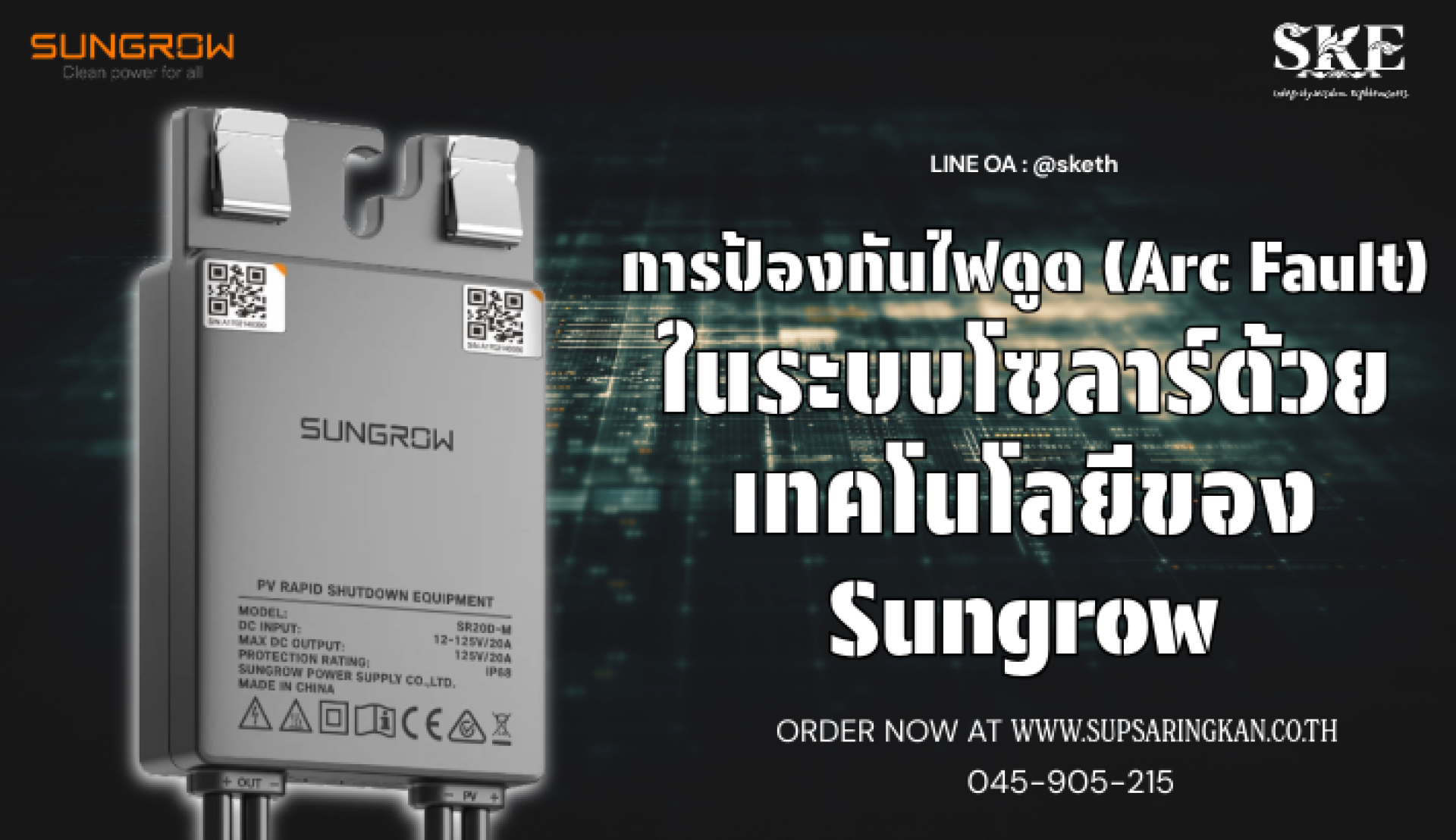 หยุดหายนะใน 0.2 วินาที: เทคโนโลยีป้องกันไฟดูด (AFCI) ของ Sungrow | SKE
