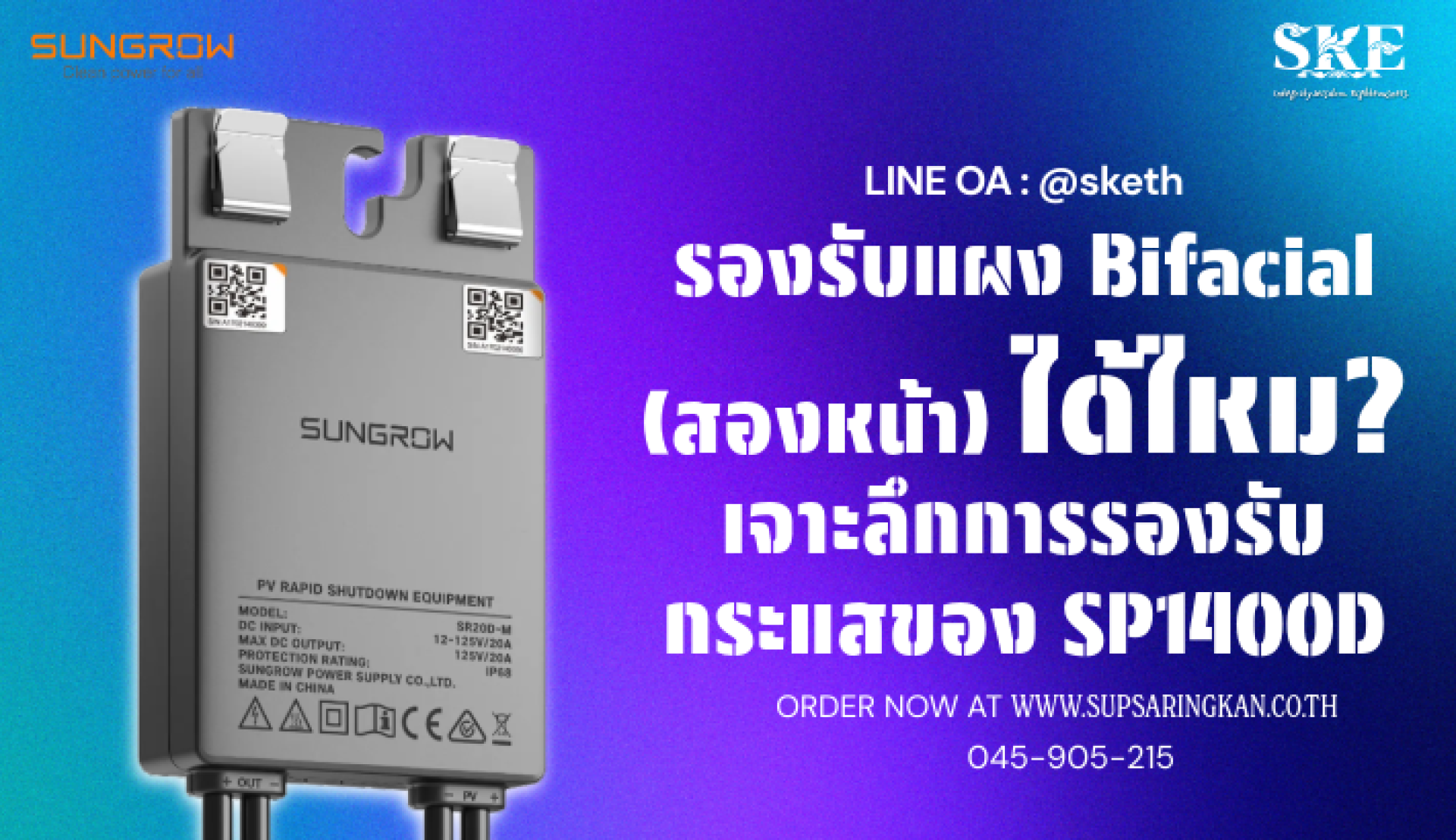 รองรับแผง Bifacial (สองหน้า) ได้ไหม? เจาะลึก SP1400D ตัวจบของแผง High Current | SKE