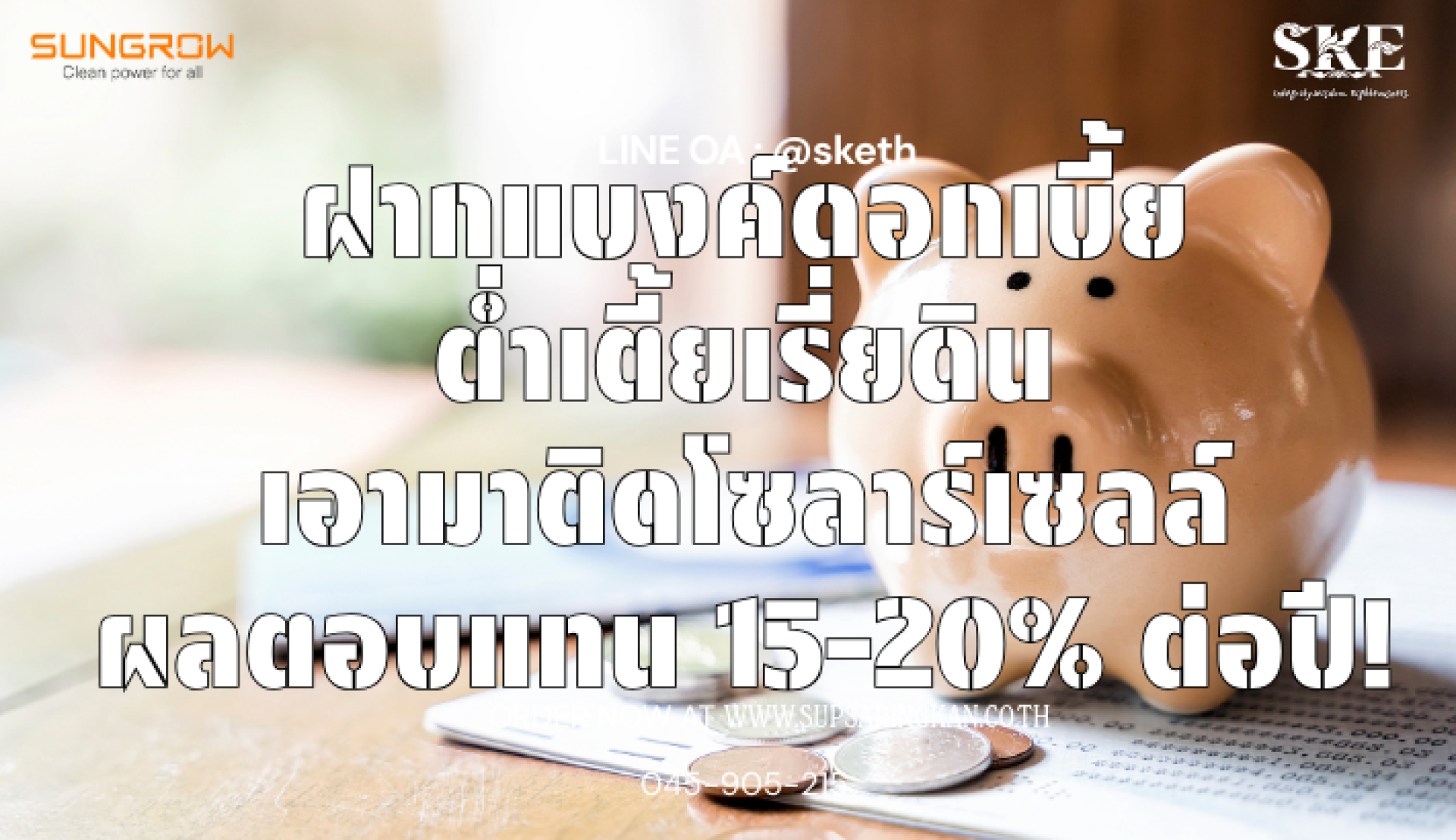ชนะเงินเฟ้อ! ย้ายเงินฝากดอกเบี้ยต่ำ มาลงทุนโซลาร์เซลล์ รับผลตอบแทน (IRR) 18%+ | SKE Solar