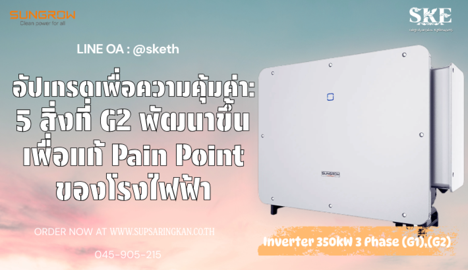"G2 ไม่ใช่แค่รุ่นใหม่ แต่คือรุ่นที่สมบูรณ์แบบ" สำหรับโรงไฟฟ้าที่ต้องการ กำจัดความเสี่ยง (De-risk) และต้องการรองรับแผงโซลาร์เซลล์ประสิทธิภาพสูงในอนาคต การอัปเกรดมาใช้ SG350HX-20 คือการลงทุนที่ชาญฉลาดที่สุด