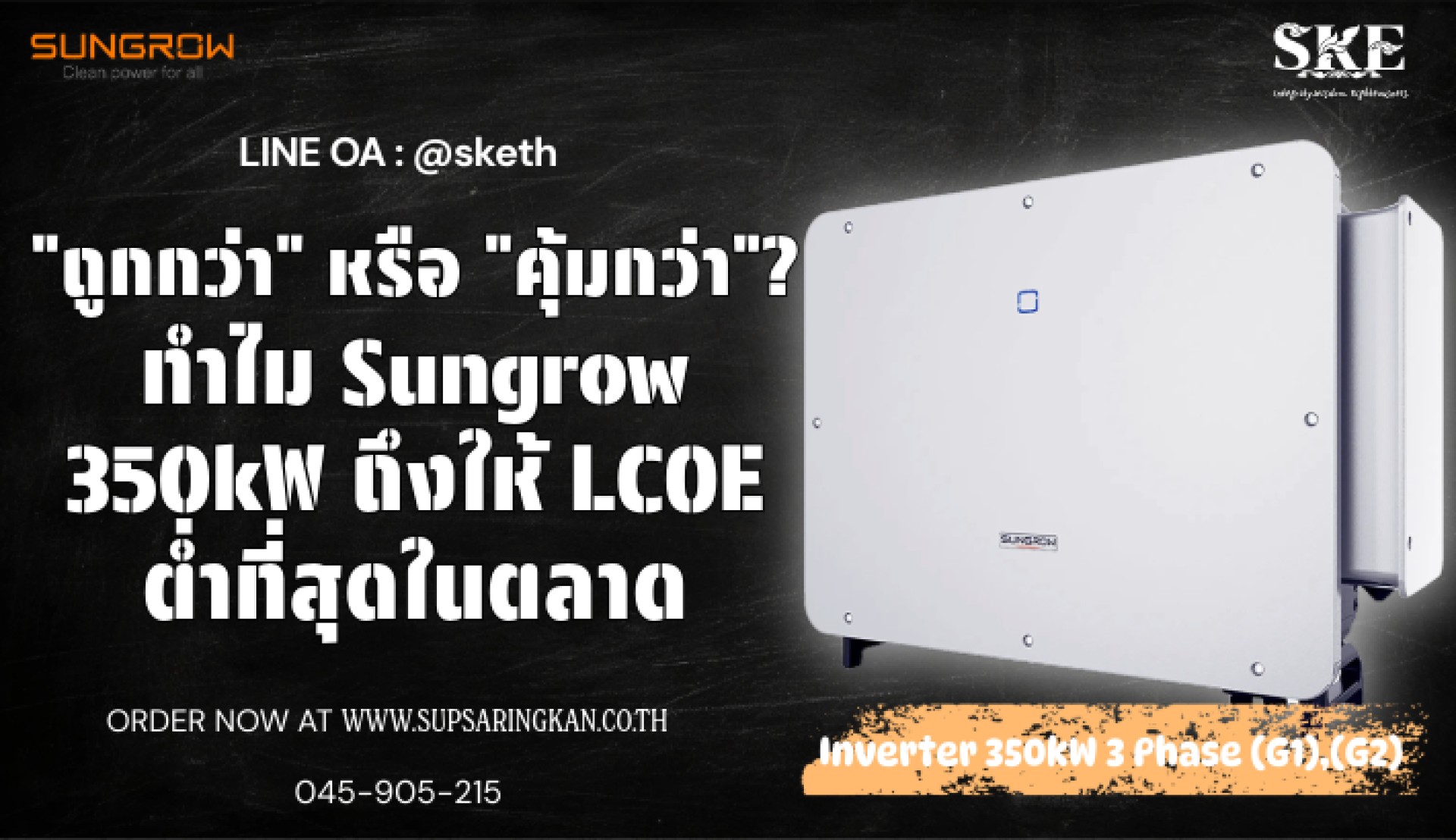 "ถูกกว่า" หรือ "คุ้มกว่า"? ทำไม Sungrow 350kW ถึงให้ LCOE ต่ำที่สุดในตลาด | SKE