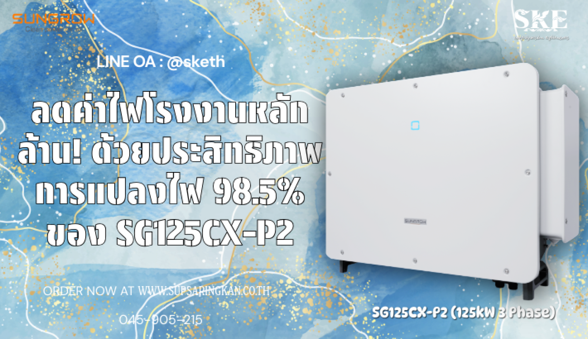 ลดค่าไฟโรงงานหลักล้าน! ประสิทธิภาพ 98.5% ของ Sungrow SG125CX-P2 | SKE Solar