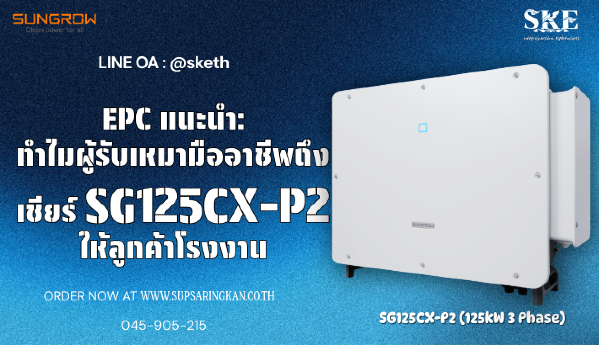 EPC แนะนำ: ทำไมผู้รับเหมามืออาชีพถึงเชียร์ Sungrow SG125CX-P2 ให้ลูกค้าโรงงาน | SKE Solar