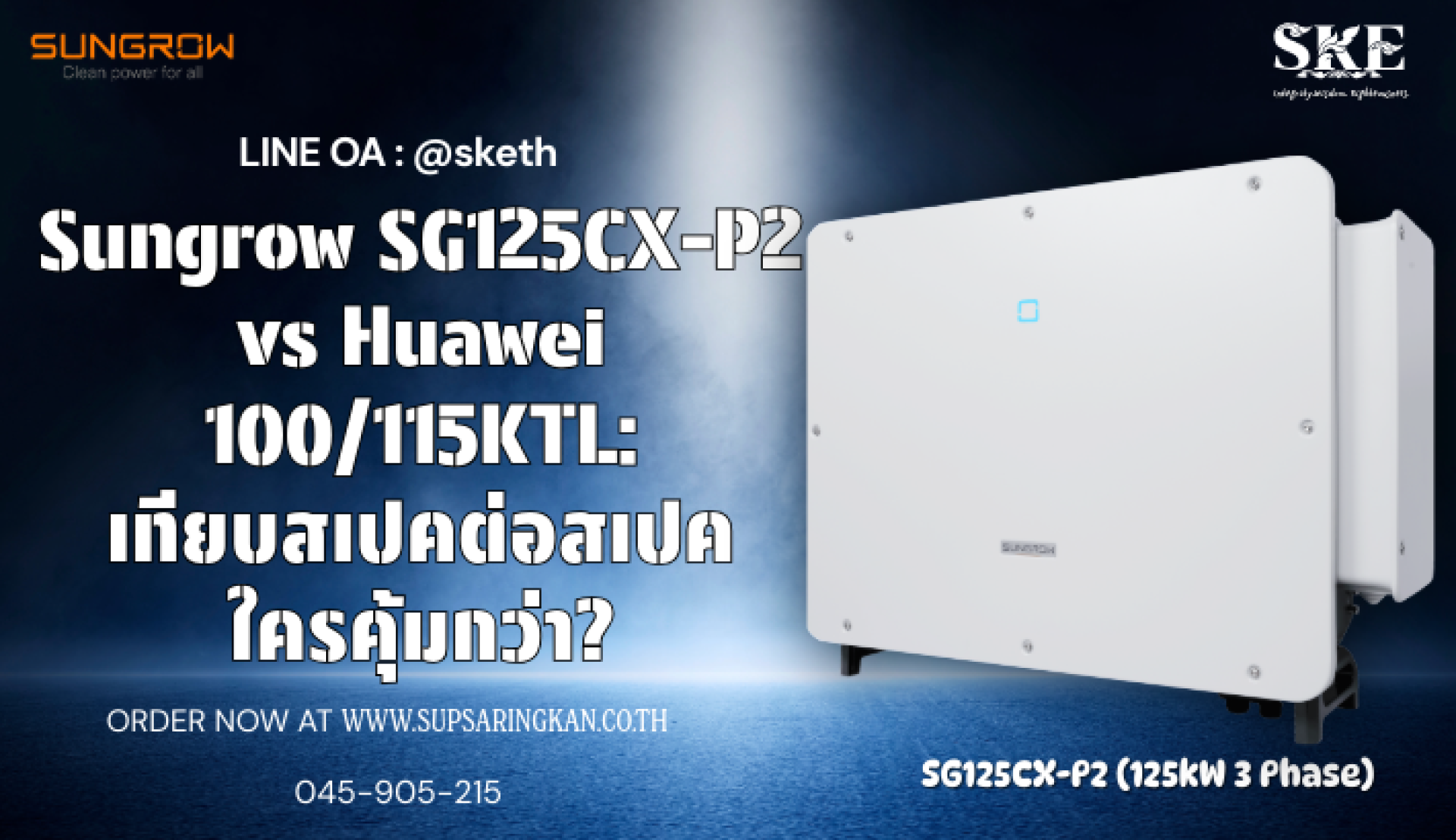 Sungrow SG125CX-P2 vs Huawei 100/115KTL: เทียบสเปคต่อสเปค ใครคุ้มกว่า? | SKE Solar
