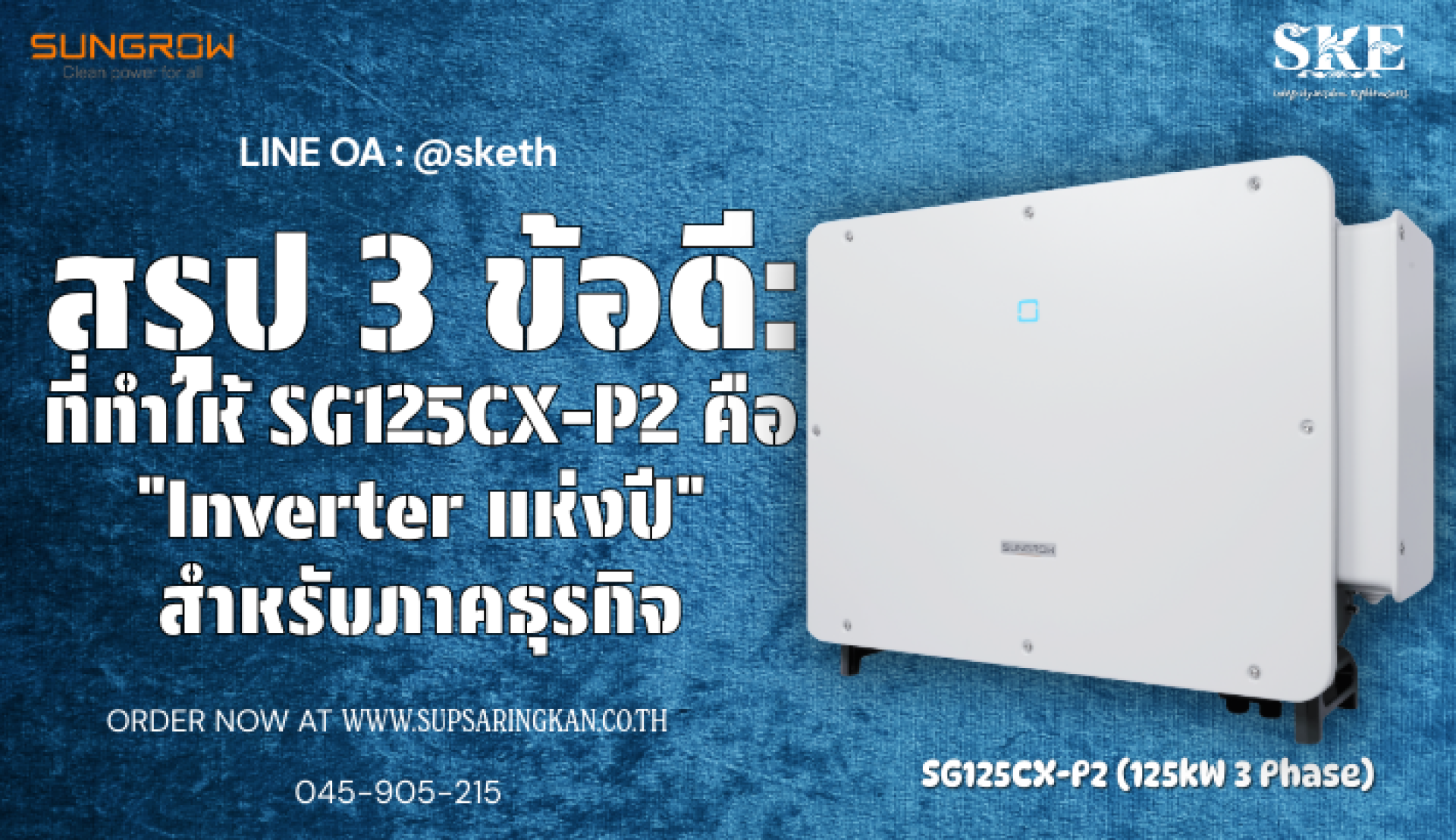 สรุป 3 ข้อดี: ทำไม Sungrow SG125CX-P2 คือ "Inverter แห่งปี" สำหรับภาคธุรกิจ | SKE Solar