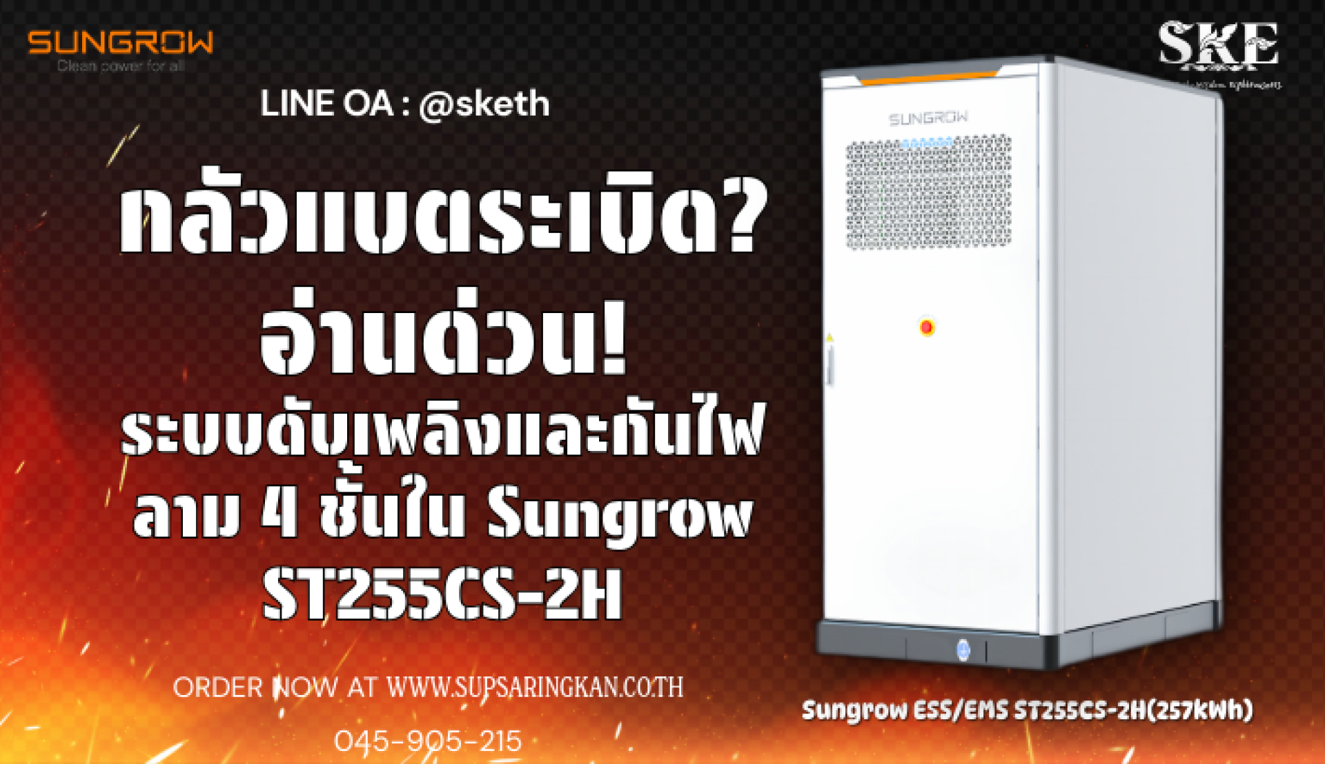 กลัวแบตระเบิด? อ่านด่วน! เจาะลึกระบบดับเพลิงและกันไฟลาม 4 ชั้นใน Sungrow ST255CS-2H | SKE Solar