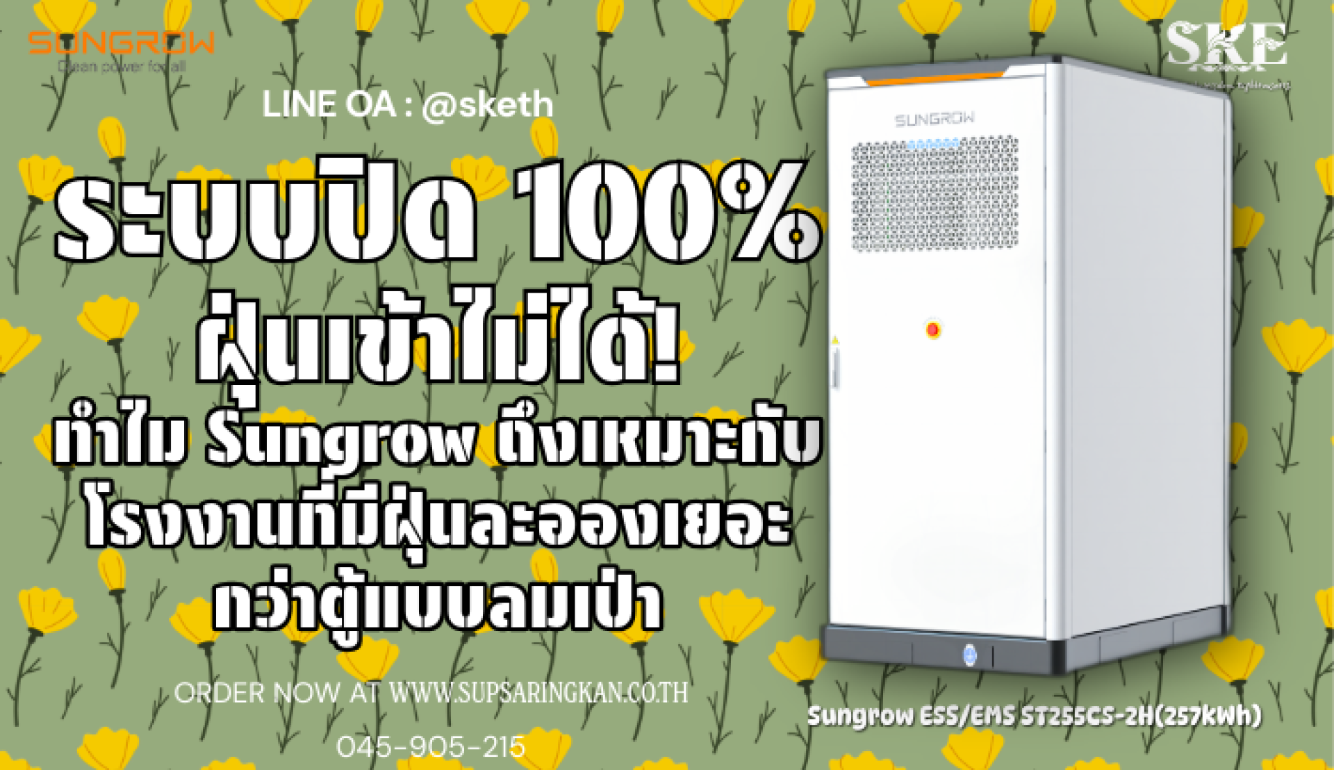 ระบบปิด 100% ฝุ่นเข้าไม่ได้! ทำไม Sungrow ถึงเหมาะกับโรงงานที่มีฝุ่นละอองเยอะกว่าตู้แบบลมเป่า | SKE Solar