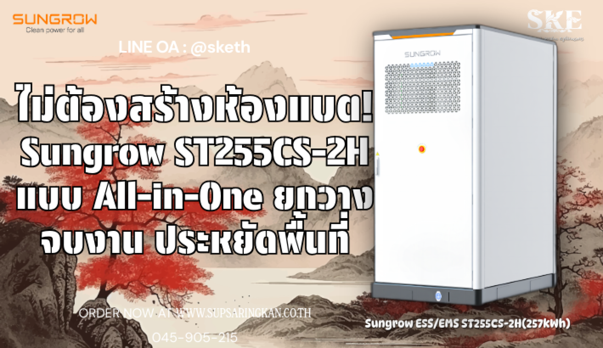 ไม่ต้องสร้างห้องแบต! Sungrow ST255CS-2H แบบ All-in-One ยกวาง จบงาน ประหยัดพื้นที่ | SKE Solar