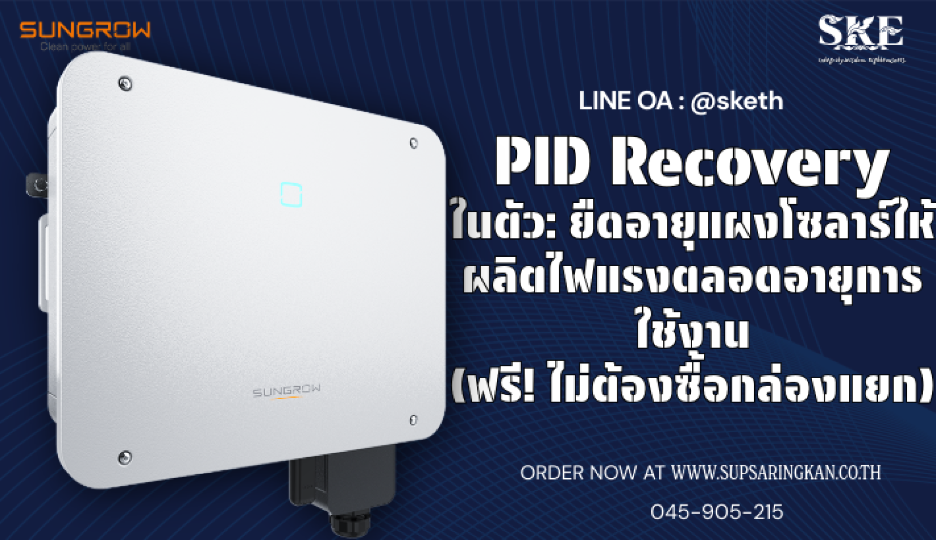 PID Recovery ในตัว: ยืดอายุแผงโซลาร์ให้ผลิตไฟแรงตลอดอายุการใช้งาน (ฟรี! ไม่ต้องซื้อกล่องแยก) | SKE Solar
