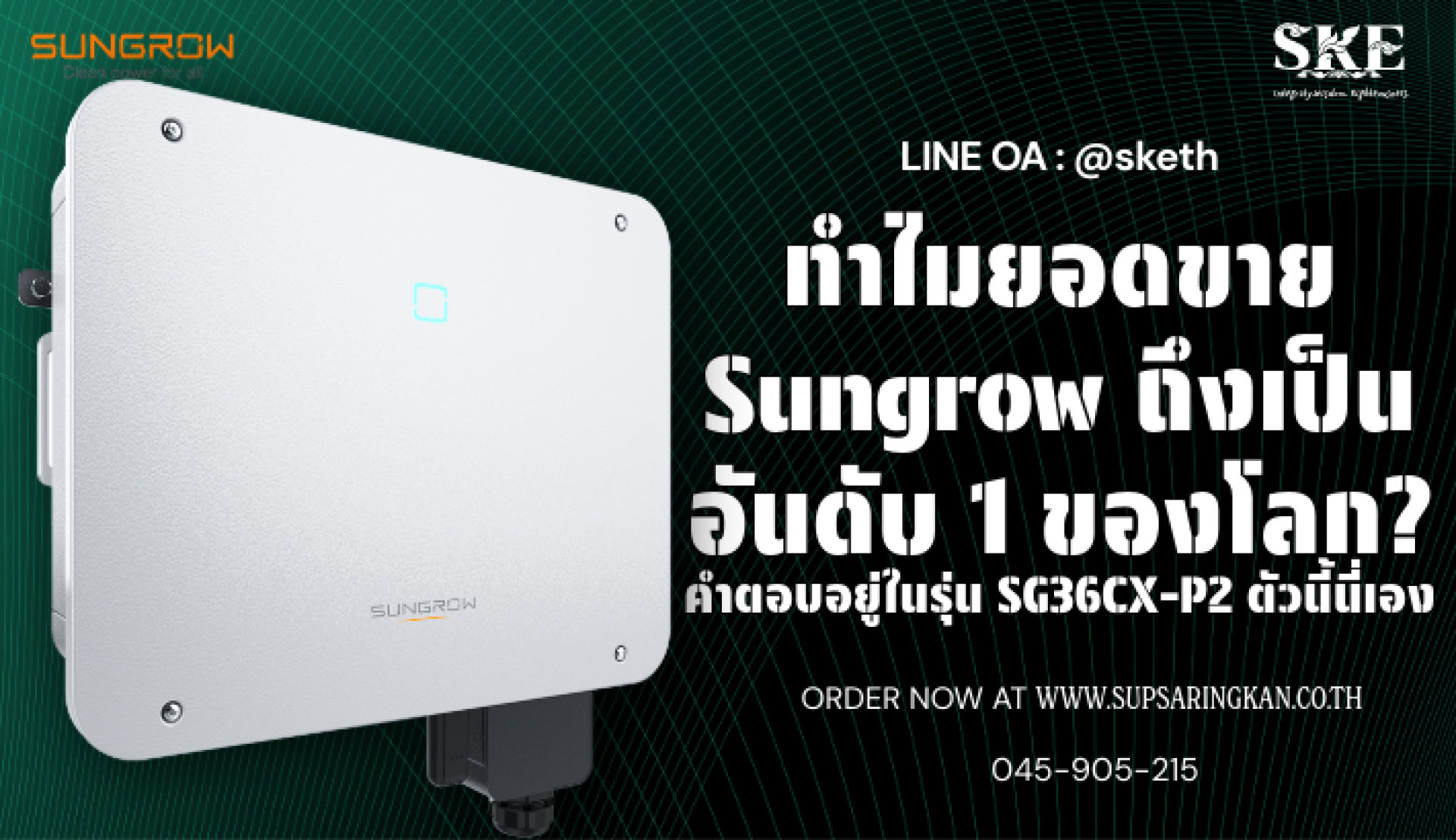 ทำไมยอดขาย Sungrow ถึงเป็นอันดับ 1 ของโลก? คำตอบอยู่ในรุ่น SG36CX-P2 ตัวนี้นี่เอง | SKE Solar