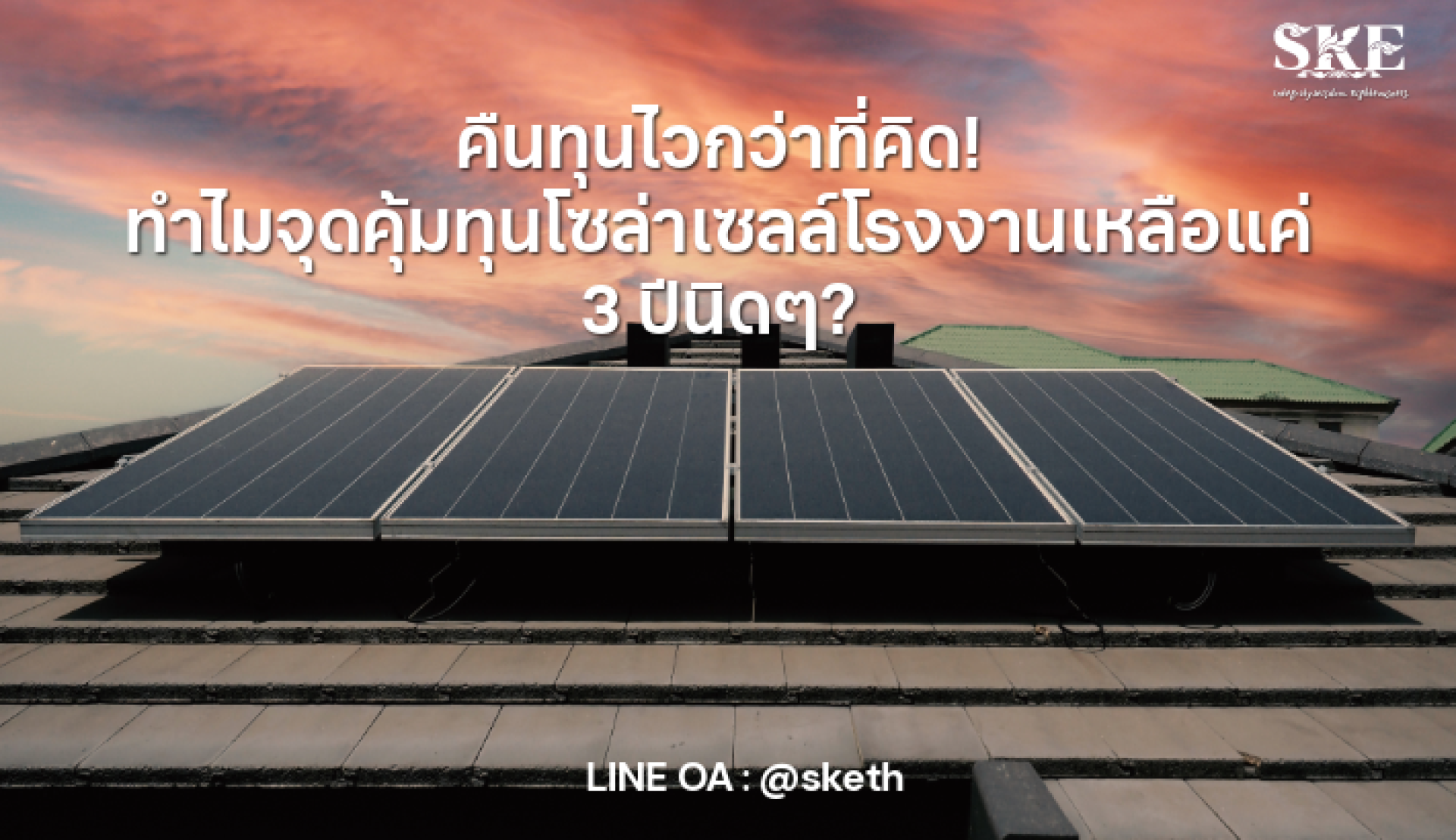 คืนทุนไวกว่าที่คิด! ทำไมจุดคุ้มทุนโซล่าเซลล์โรงงานเหลือแค่ 3 ปีนิดๆ? (Update 2026) | SKE Solar