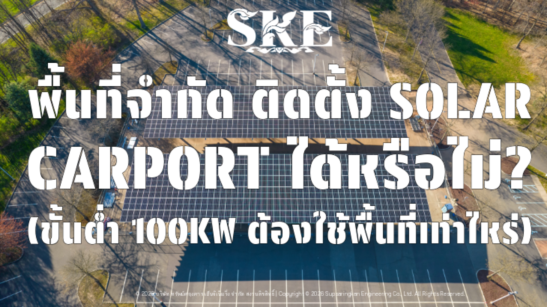 พื้นที่จำกัด ติด Solar Carport ได้ไหม? (เจาะลึก: 100kW ต้องใช้ที่จอดรถกี่คัน?) | SKE Solar