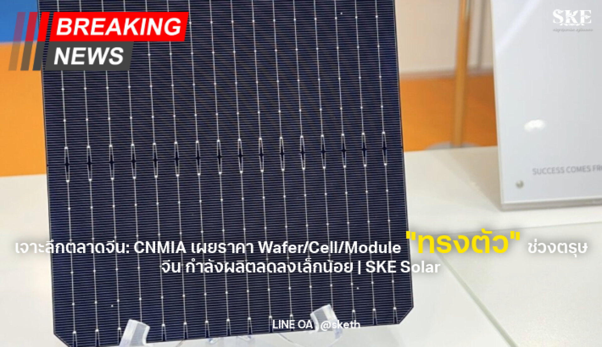 เจาะลึกตลาดจีน: CNMIA เผยราคา Wafer/Cell/Module "ทรงตัว" ช่วงตรุษจีน กำลังผลิตลดลงเล็กน้อย | SKE Solar