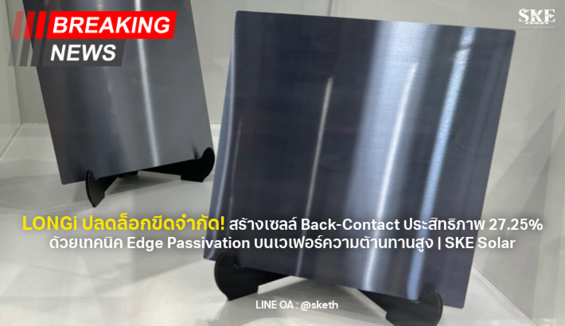 LONGi ปลดล็อกขีดจำกัด! สร้างเซลล์ Back-Contact ประสิทธิภาพ 27.25% ด้วยเทคนิค Edge Passivation บนเวเฟอร์ความต้านทานสูง | SKE Solar